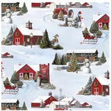 Timeless Treasures Winter Village & Snowman Allover Cotton Fabric | Christmas Farm Scene